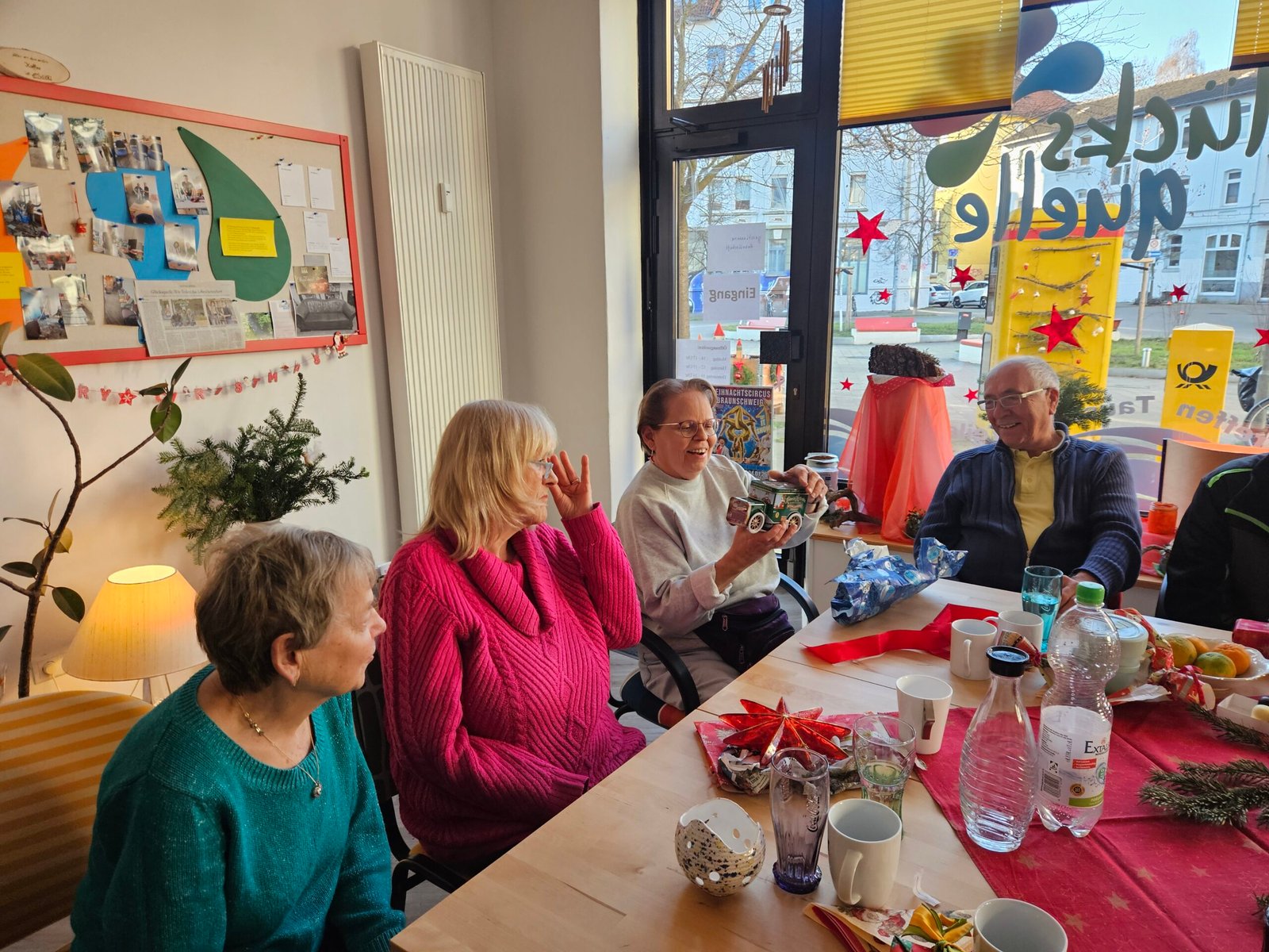 In gemütlicher Atmosphäre verbrachten die Besucherinnen und Besucher gemeinsam Zeit, spielten, lachten und konnten das vorbereitete Essen genießen. Traditionell gab es selbstgemachten Kartoffelsalat mit Würstchen sowie selbstgebackenen Kekse beim anschließenden Kaffeetrinken. Für zusätzliche Unterhaltung sorgten ein Quizspiel und das beliebte „Schrottwichteln“, bei dem manche der originellen Geschenke so gut ankamen, dass kaum jemand tauschen wollte.